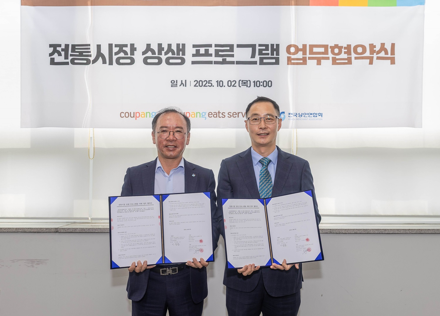 2025. 10. 02 서울 – 쿠팡과 쿠팡이츠서비스(CES)가 전국상인연합회와 상생협약을 체결하고, 전통시장의 디지털 전환 강화와 지속 가능한 성장을 위한 협력에 나섰다.
