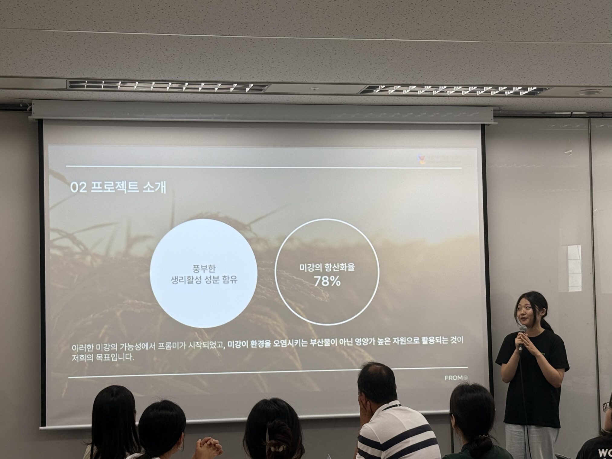 프롬미 팀은 이날, 버려지는 쌀겨인 미강을 재활용해 친환경 비누를 만드는 방법에 대해 직접 시범을 보였다.