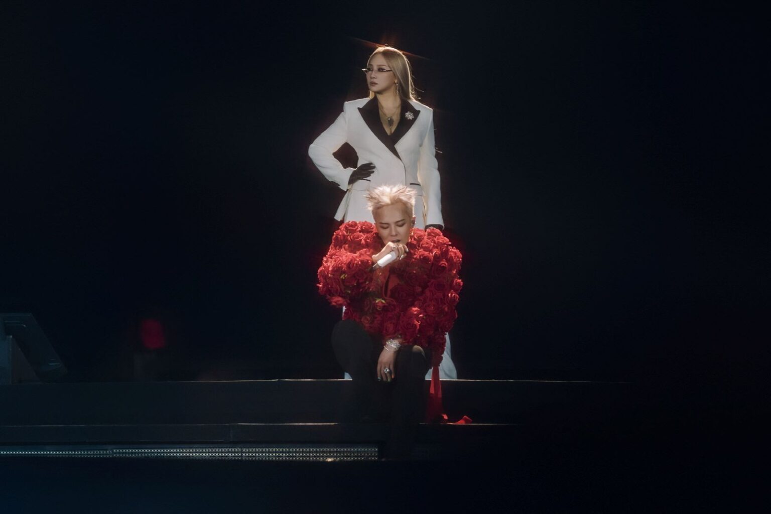 지난 3월 ‘쿠팡플레이와 함께하는 G-DRAGON 2025 월드투어 [위버맨쉬] 인 코리아’에서 지드래곤이 씨엘(CL)과 함께 무대를 펼치고 있다.