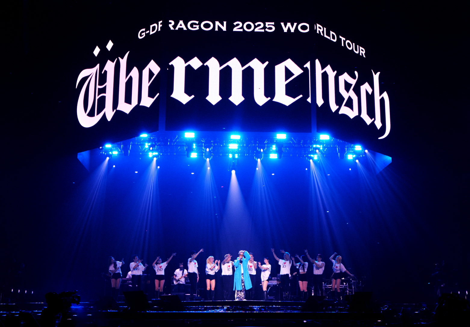 지난 8월 22일 미국 뉴어크에서 진행된 ‘G-DRAGON 2025 월드투어 [위버맨쉬]’에서 지드래곤이 무대를 펼치고 있다.