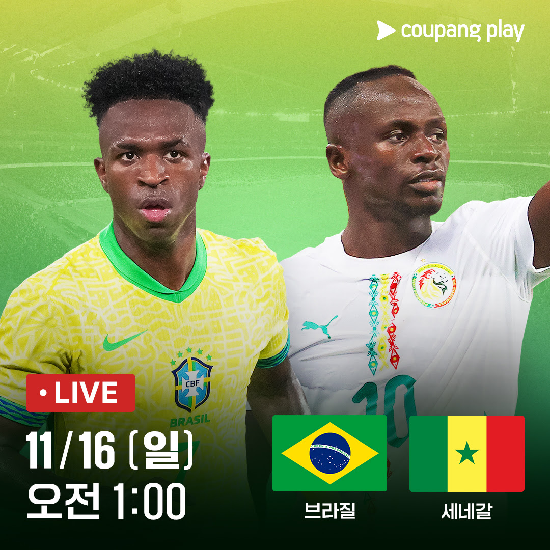 월드컵 우승후보 부동의 1위 브라질 축구국가대표팀의 친선경기, 이제 쿠팡플레이에서 독점 생중계로 만난다!
