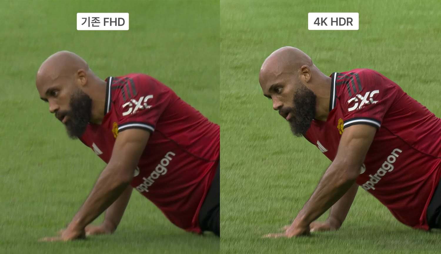 기존 FHD 화질(좌)과 쿠팡플레이가 선보이고 있는 4K 중계 화질(우)