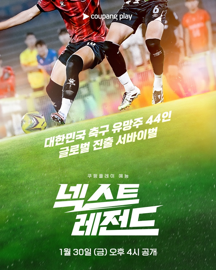 유럽 리그 진출이라는 꿈을 향한 참가자들의 뜨거운 도전과 좌절, 그리고 살아남기 위한 치열한 순간을 생생하게 담은 초대형 축구 서바이벌 <넥스트 레전드>는 오는 1월 30일(금)부터 매주 금요일 오후 4시 오직 쿠팡플레이에서 공개된다. 쿠팡 와우회원은 물론 일반회원 누구나 무료로 시청할 수 있다.