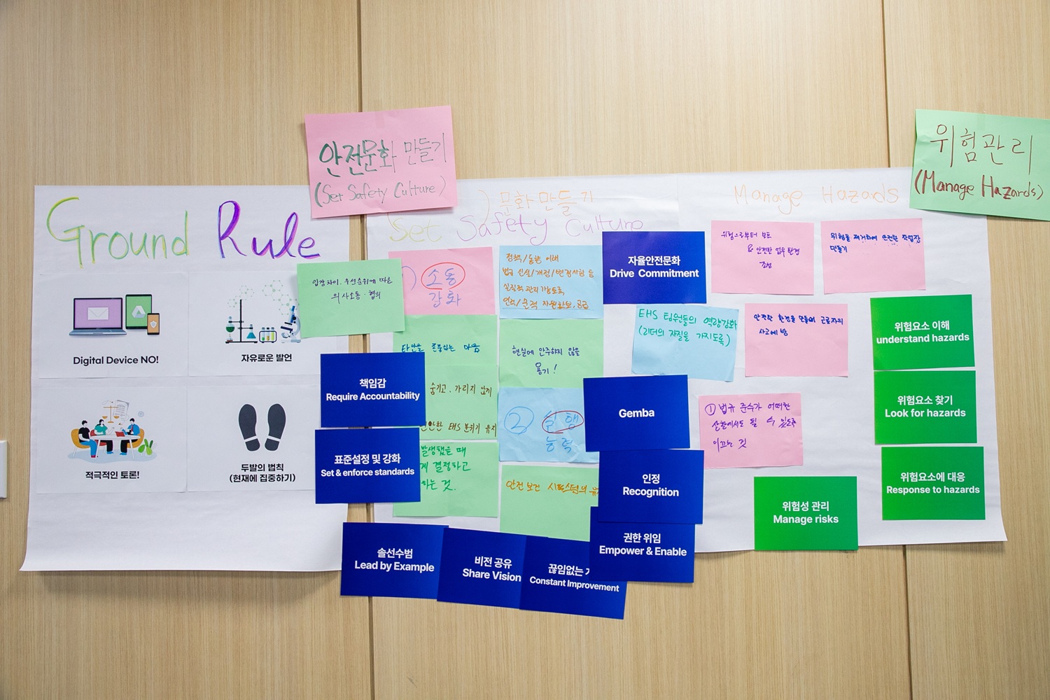 이번 워크숍을 기획한 RM&E Strategy & Development 팀의 Justin(정태현) 님은 “워크숍에 참여한 리더들은 스스로 안전 문화를 일구는 주인공이자, 안전에 대한 열정을 행동으로 증명해 보일 든든한 롤모델들”이라고 강조했습니다.