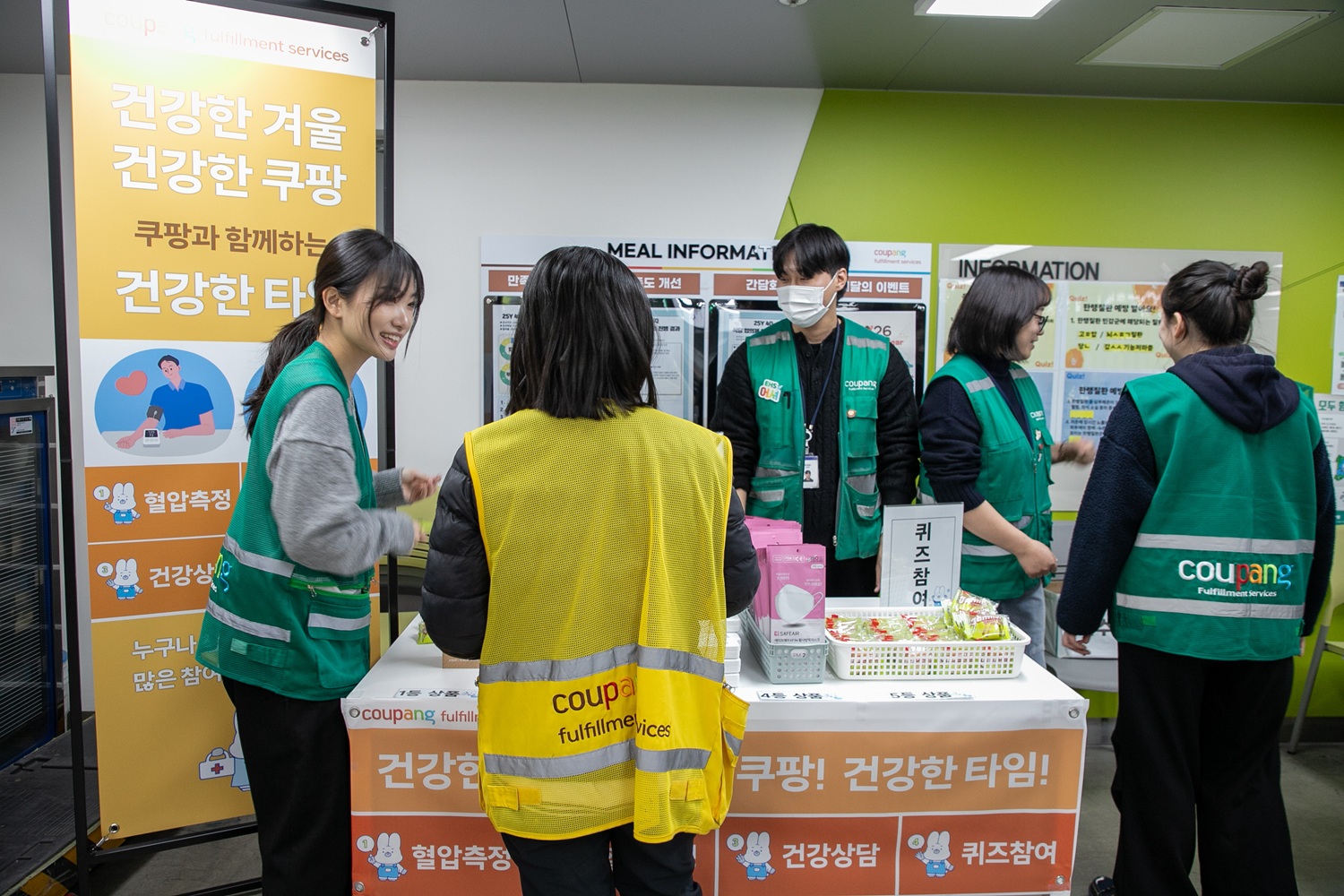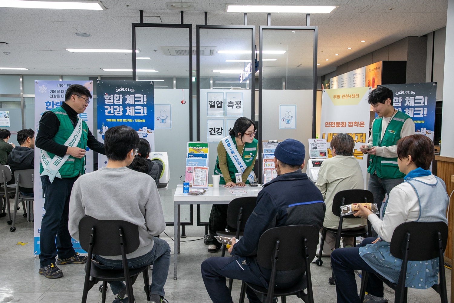 라이언 브라운·정종철 대표이사와 채종민 최고안전보건책임자(CSO)는 야간 시간대 물류 현장을 직접 찾아 안전 체계를 살피는 한편, 현장 곳곳에서 묵묵히 애쓰는 구성원들에게 따뜻한 응원의 선물을 건넸습니다. 또한 전국 주요센터 EHS 팀은 겨울철 기온 변화로 발생할 수 있는 질환을 예방하기 위해 혈압 측정, 혈당 체크, 인바디 분석 등 건강 상담도 함께 실시해 구성원들의 호응을 얻었습니다.