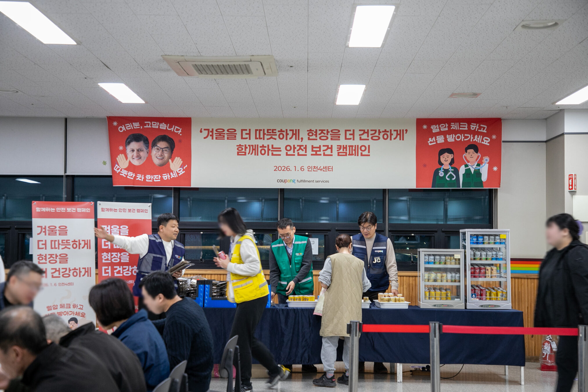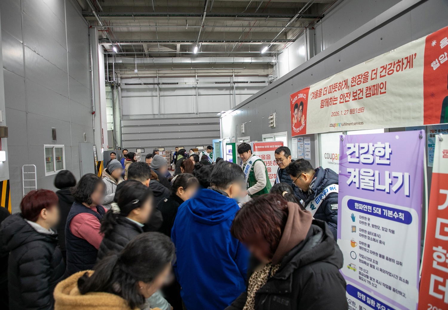 쿠팡풀필먼트서비스(CFS)는 지난 1월 6일부터 8주간 ‘겨울을 더 따뜻하게 현장을 더 안전하게’란 슬로건 아래, 대표이사와 함께하는 ‘2026 혹한기 안전·보건 캠페인’을 열었습니다. 한겨울 야간 시간, 임직원들의 활력과 온기로 가득했던 캠페인 현장을 소개합니다.