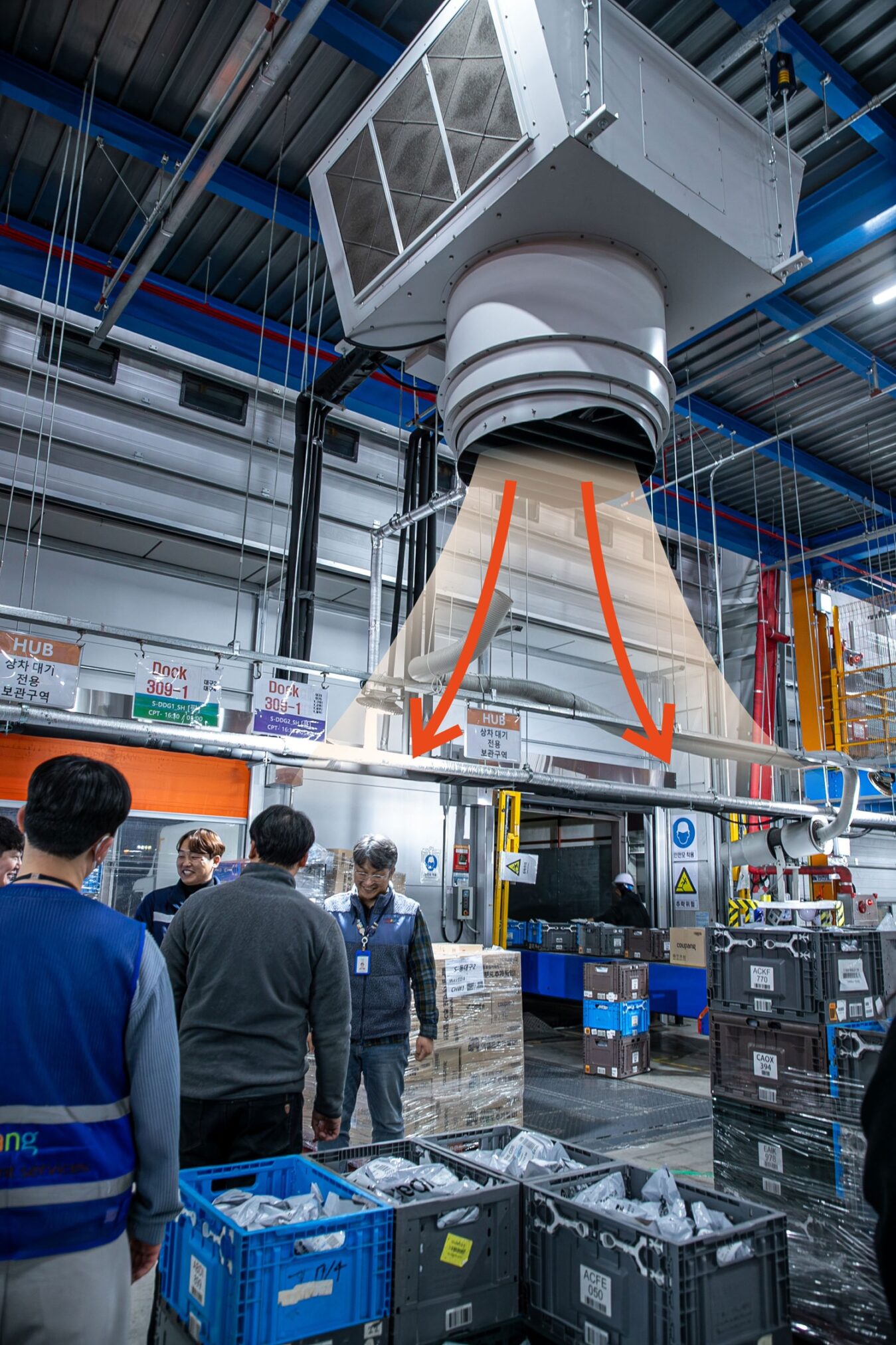 인천4센터(좌), 창원3센터(우) 설치된 HAVC(Heating, Ventilation, Air Conditionig)에서 따뜻한 바람이 나오고 있다.